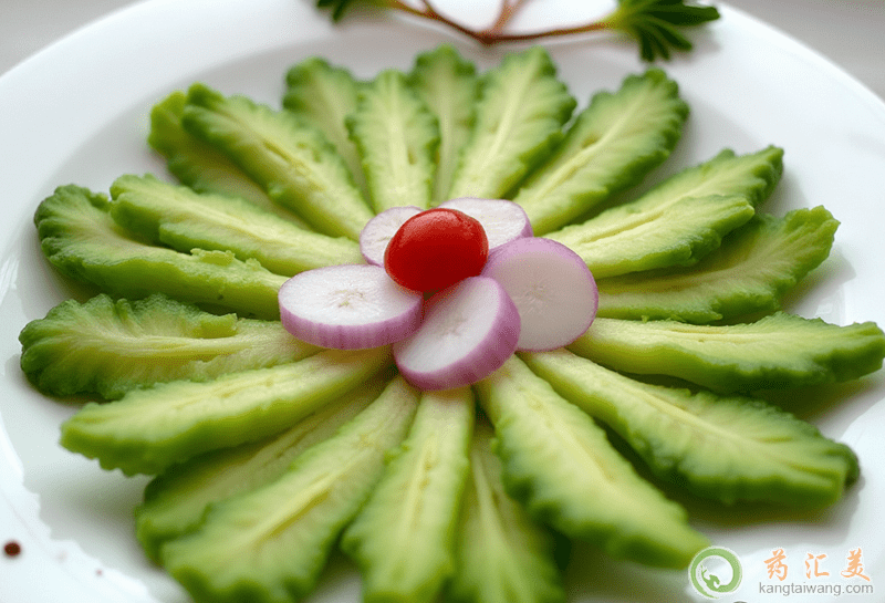 苦瓜性寒味苦、入心、肺、胃,具有清暑解渴、降血壓、血脂、養(yǎng)顏美容、促進(jìn)新陳代謝等功能。苦瓜含豐富的維生素B1.維生素C及礦物質(zhì),長期食用,能保持精力旺盛,對治療青春痘有很大益處。