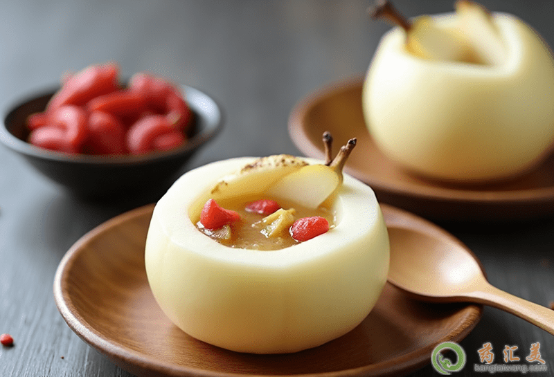 味甘性寒,含蘋果酸、檸檬酸、維生素B1、B2.C、胡蘿卜素等,具生津潤燥、清熱化痰之功效,特別適合秋天食用。《本草綱目》記載,梨者,利也,其性下行流利。它藥用能治風熱、潤肺、涼心、消痰、降火、解毒。現代醫學研究證明,梨確有潤肺清燥、止咳化痰、養血生肌的作用。因此對急性氣管炎和上呼吸道感染的患者出現的咽喉干、癢、痛、音啞、痰稠、便秘、尿赤均有良效。梨又有降低血壓和養陰清熱的效果,所以高血壓、肝炎、肝硬化病人常吃梨有好處。梨可以生吃,也可以蒸,還可以做成湯和羹。但是梨性寒,一次不宜多吃。尤其脾胃虛寒、腹部冷痛和血虛者,不可以多吃,多吃易傷脾胃。