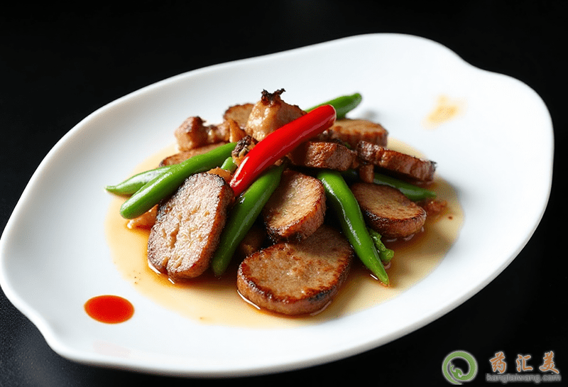 4、加入醋、醬油、料酒、豆豉各適量,繼續翻炒少時,加適量雞精后炒勻,即可裝盤。