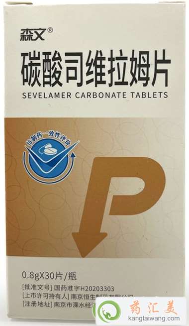 碳酸司維拉姆片為水電解質平衡調節藥,通過結合消化道中的磷酸根并降低其吸收,可降低血清中的磷酸根濃度。