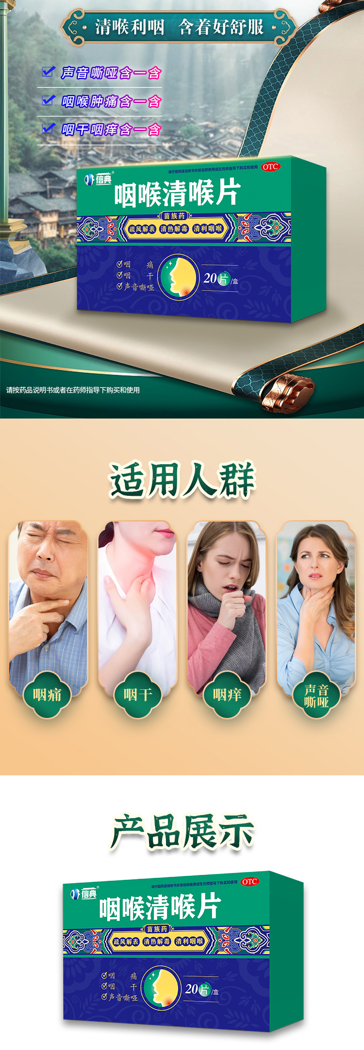 【關聯理由】 五味沙棘含片+咽炎片/喉糖消炎丸——清熱、解毒、消炎,用于咽喉痛癢,效果更好。