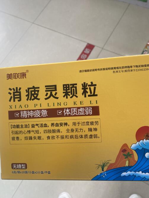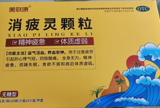 答消疲靈顆粒是正規(guī)國(guó)藥準(zhǔn)字號(hào)中成藥,國(guó)藥準(zhǔn)字號(hào)是:國(guó)藥準(zhǔn)字Z20003384。消疲靈顆粒-無(wú)糖型是江西京通美聯(lián)藥業(yè)有限公司生產(chǎn)的6g*10袋*2小盒裝的消疲靈顆粒,消疲靈顆粒可以益氣活血,養(yǎng)血安…