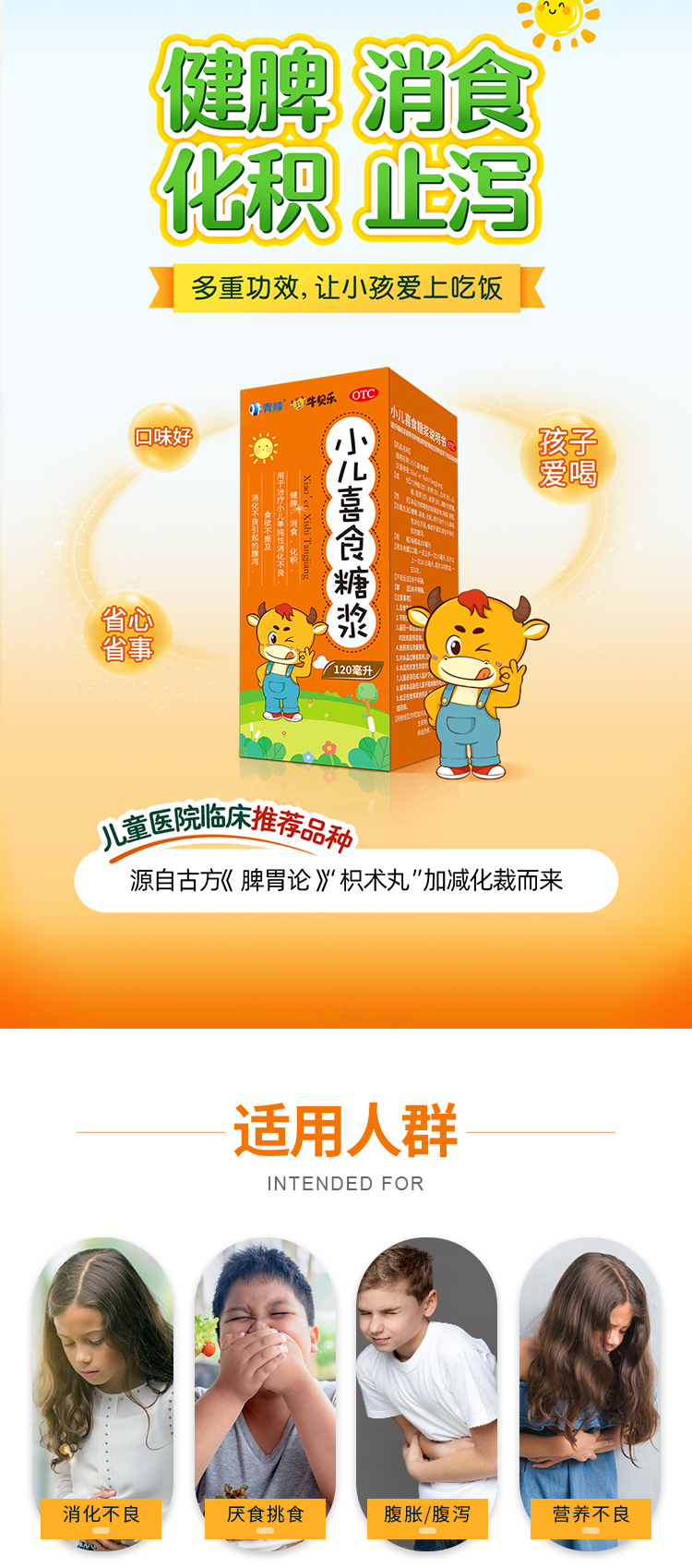 答小兒喜食糖漿主治:健牌,消食,化積。用于治療小兒單純性消化不良,食欲不振及消化不良引起的腹瀉